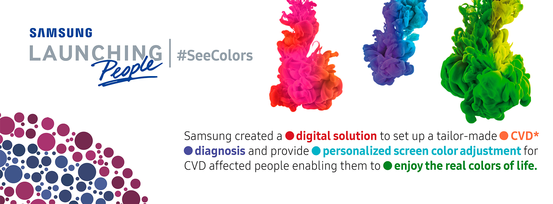 "Samsung está comprometido en hacer que las personas vivan diariamente de una manera más inteligente y conveniente a través de la tecnología e innovación" dijo Hyeongnam Kim, vicepresidente de la división de Visual Display en Samsung Electronics. "El lanzamiento de SeeColors para QLED TV, incorpora la misión de proveer a todos los usuarios de una manera para superar uno de los retos ópticos más grandes por medio de las últimas tecnologías y displays visuales”.