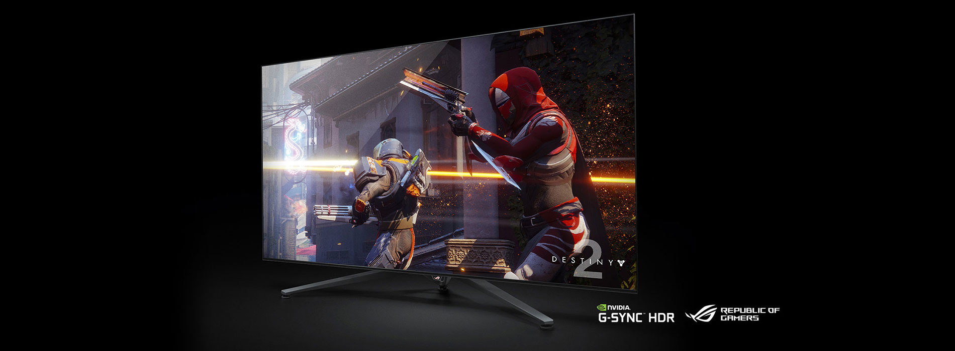 Para empezar, la pantalla ROG PG65 presenta un monstruoso panel de 65" que tiene una resolución 4K de 3840×2160, pero la historia no termina ahí. La pantalla no es solo 'grande', sino que también cuenta con una frecuencia de actualización de 120Hz, que además incluye la tecnología NVIDIA G-SYNC para que el panel pueda mantenerse actualizado con su velocidad de fotogramas. En otras palabras, nunca habrá ningún tipo de corte en la imagen. Eso es exactamente lo que un jugador necesita hoy en día.